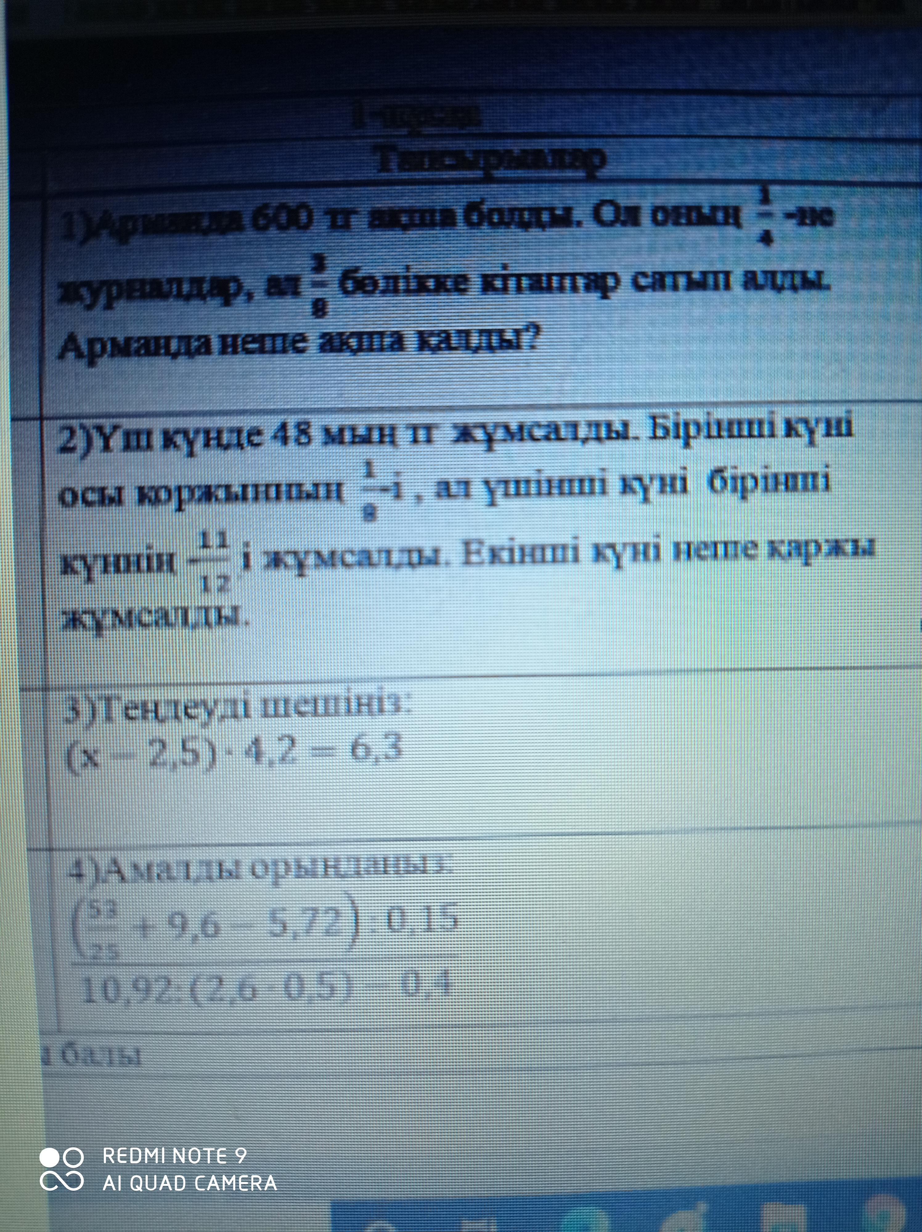 ж: 1/4 ақша қалды