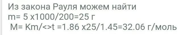 При растворении 5,0 г вещества в 200 г воды получается не проводящий тока раствор, кристаллизующийся при -1,45ºС. Определить