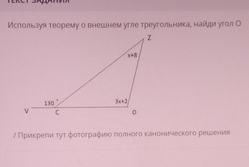 Используя теорему о внешнем угле треугольника, найди угол 0