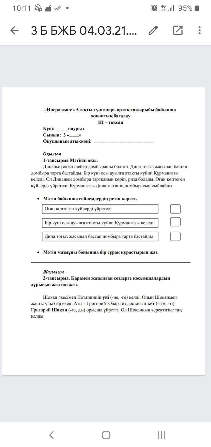 Сор по казахскому 3 класс помогите плис