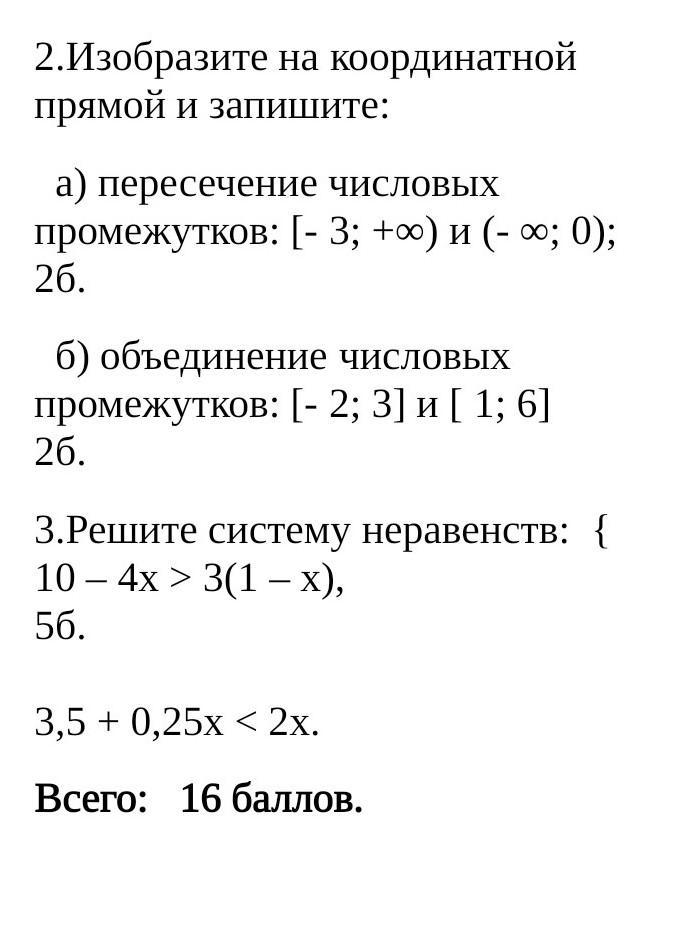 объединение числовых промежутков: [- 2; 3] и [ 1; 6] 15 балов дам, пожалуйста помогите 2 и 3 задание