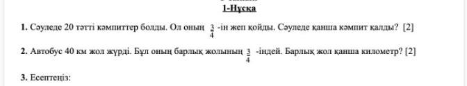 1.У Сауле было 20 конфет. Она сьела 3/4-часть из них. Сколько конфет осталось?