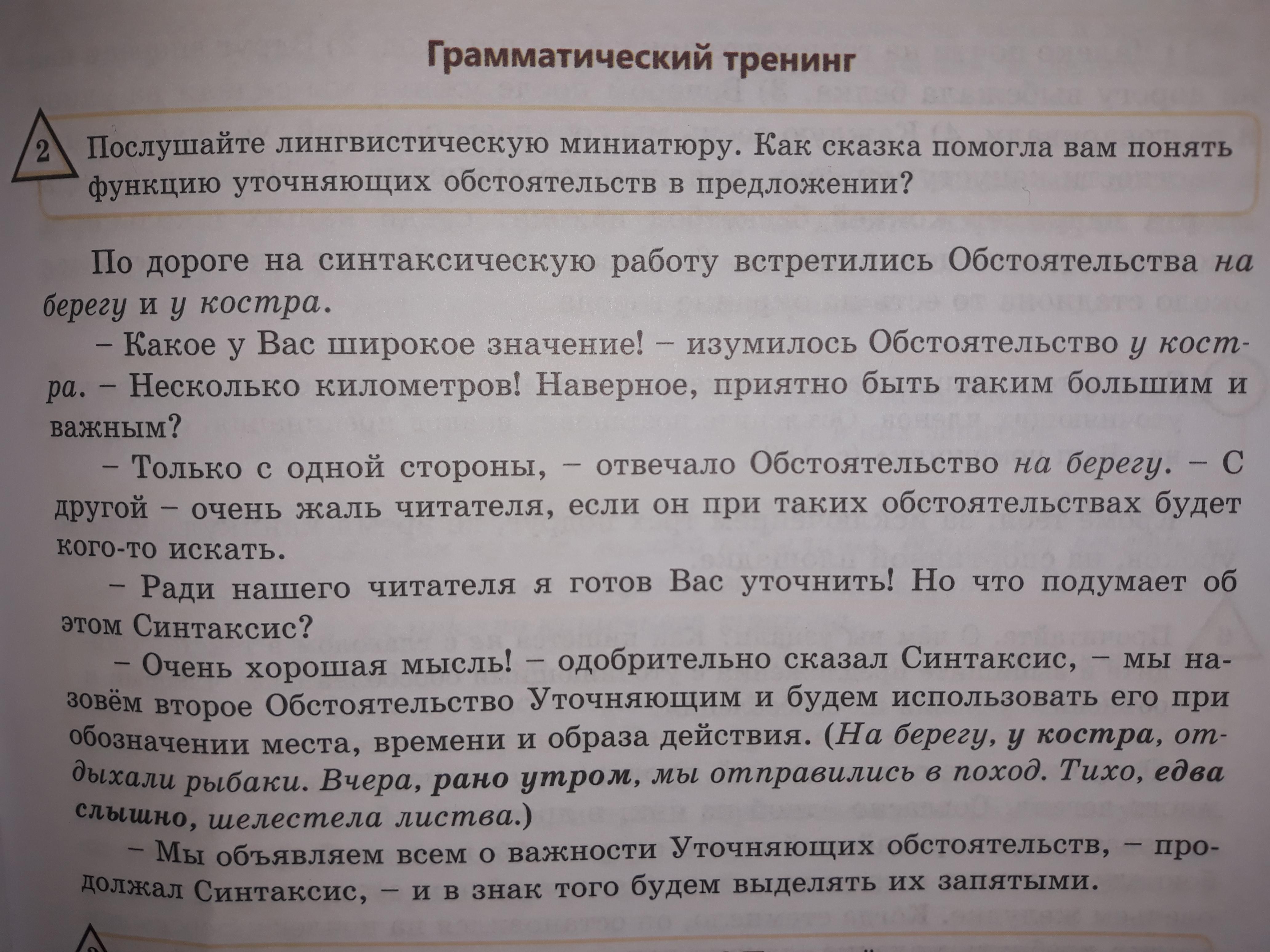 Послушайте лингвистическую миниатюру. Как сказка помогла вам понять функцию уточняющих обстоятельств в предложении?
