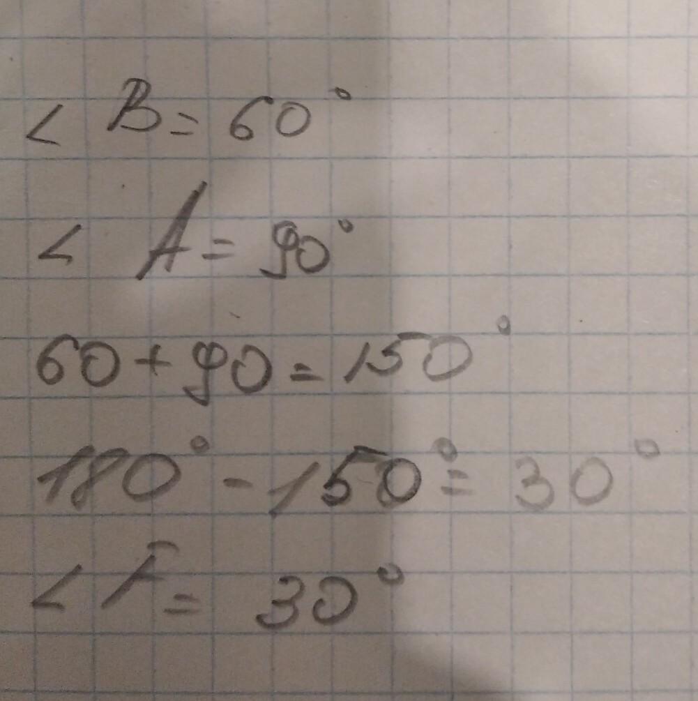 <В=60° <А=90°60+90=150 180-150=30° ответ 30°