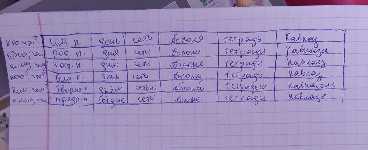 определить склонение сущ-ных и просклонять их по падежам: день, сеть, яблоня, тетрадь, Кавказ