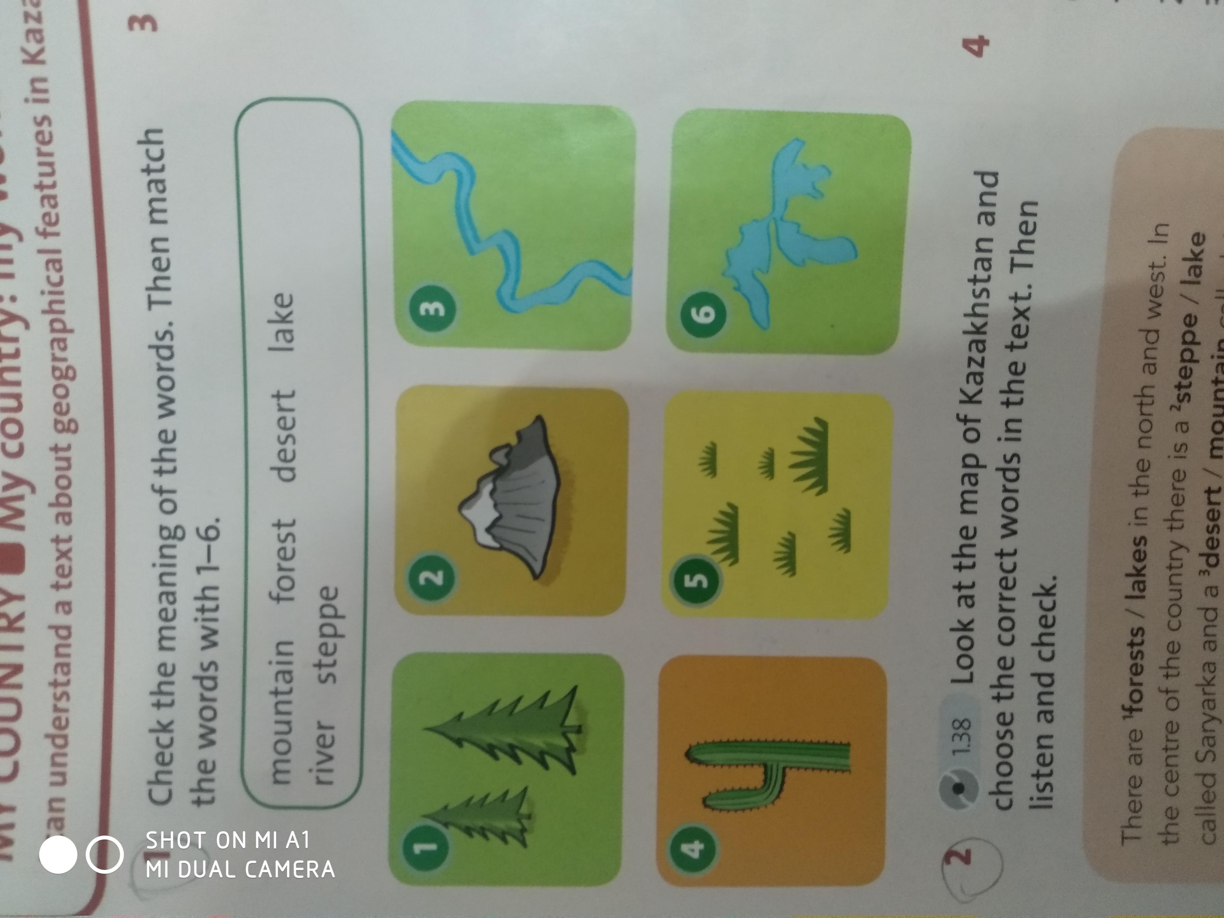 Check the meaning of the words. Then match the words with 1-6. mountain forest desert lake river steppe