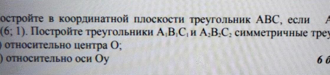 С(6; 1). Постройте треугольники A,B,C, и A,B,C, симметричные треугольнику АВС