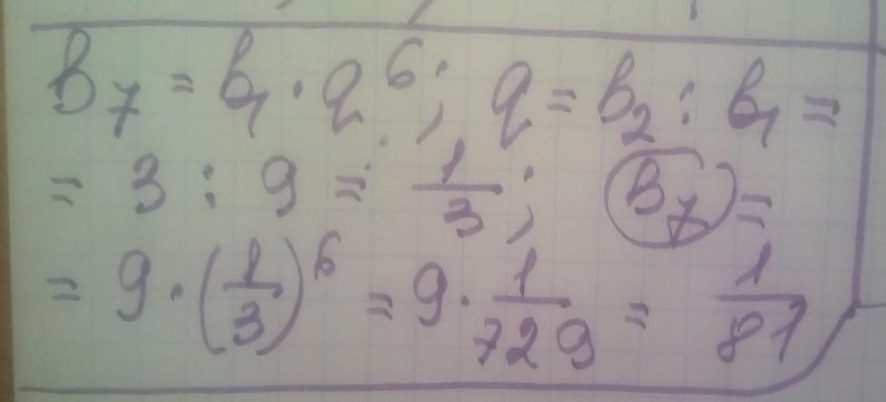 Знайдіть сьомий член геогеометричної прогресії: 9;3;1...