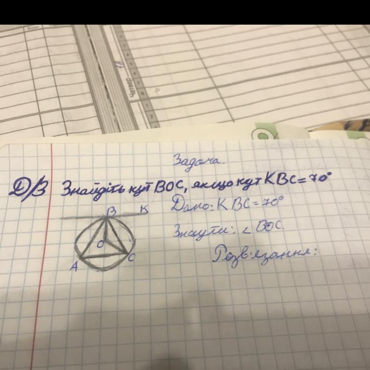 Знайдіть кут BOC,якщо кут KBC=70градусів