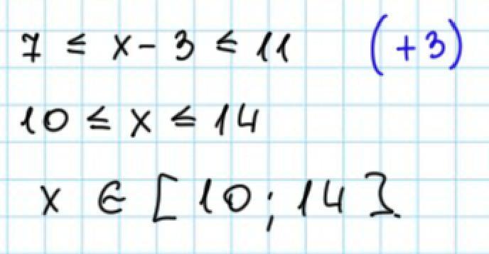 7 ≤ Х-3 ≤ 11 ЗАПИШИТЕ ОТВЕТ В ВИДЕ ЧИСЛОВОГО ПРОМЕЖУТКА