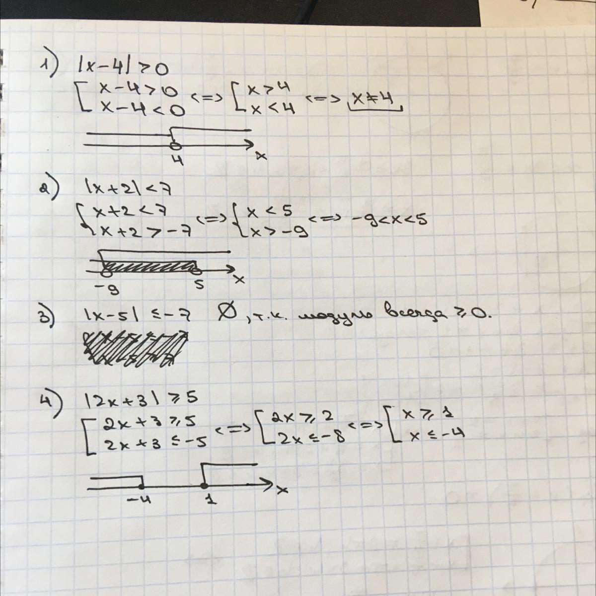 1) |x-4|>0 |