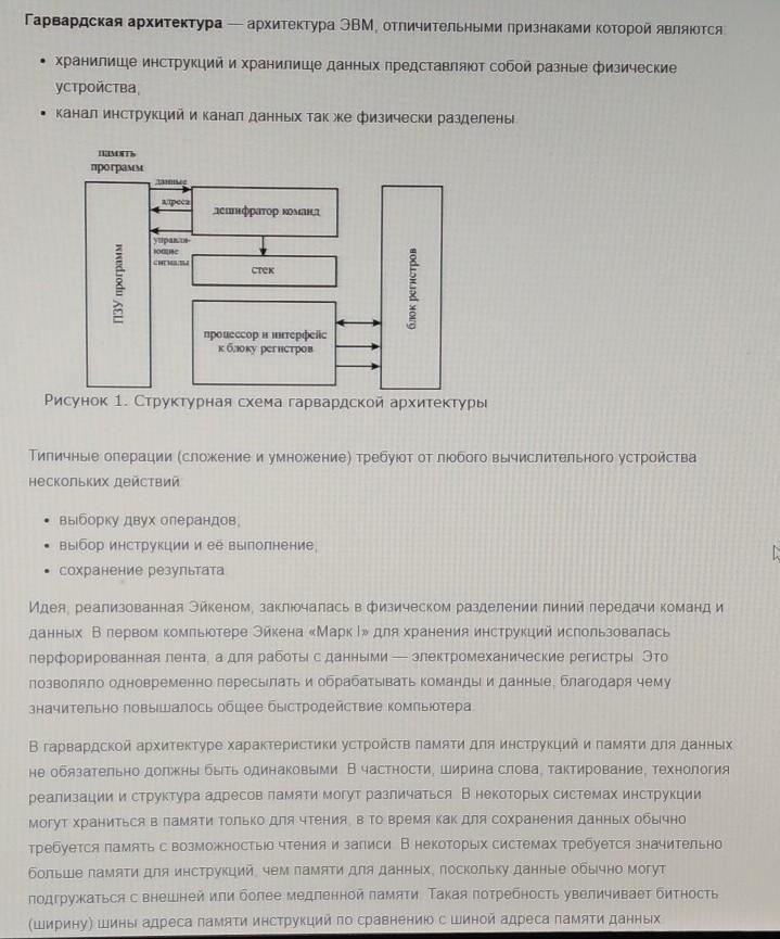 В гарварской архетектуре память для инструкций и память для данных