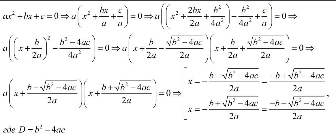 Формула дискременанта вывести вывод и объяснить ax²+bx+c=0 => x²+b/a×x+c/a=0