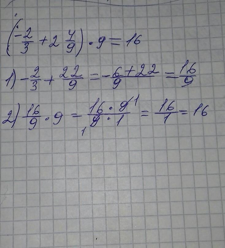 (- 2/3 + 2 4/9) * 9 помогите решить по действиям пожалуйста