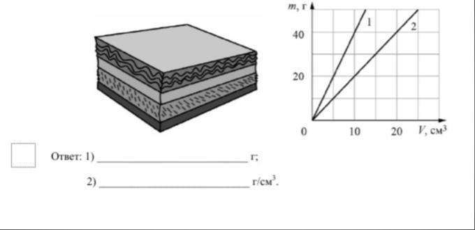 Из графика для первого тела непосредственно следует, что масса первого компонента при V₁ = 10 см³: