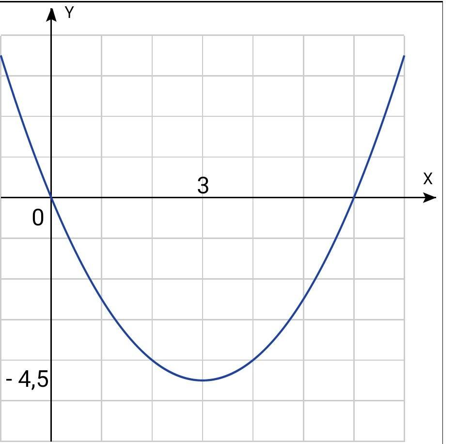 х min = 3, y min = f(3) = 1/2•9 - 9 = - 4,5.