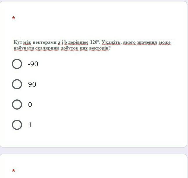 Я так думаю,ибо скалярный добуток когда угол 90 равно 0,а 120 это немножко больше чем 90,поэтому ответ 1
