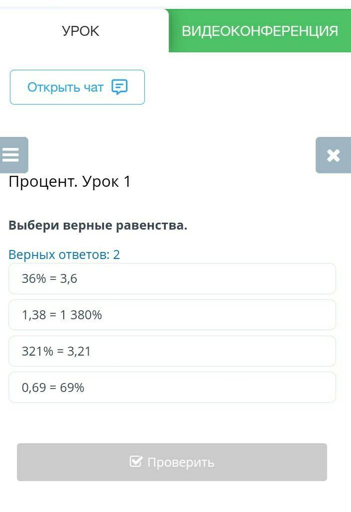 Выбери верные равенства верных ответа