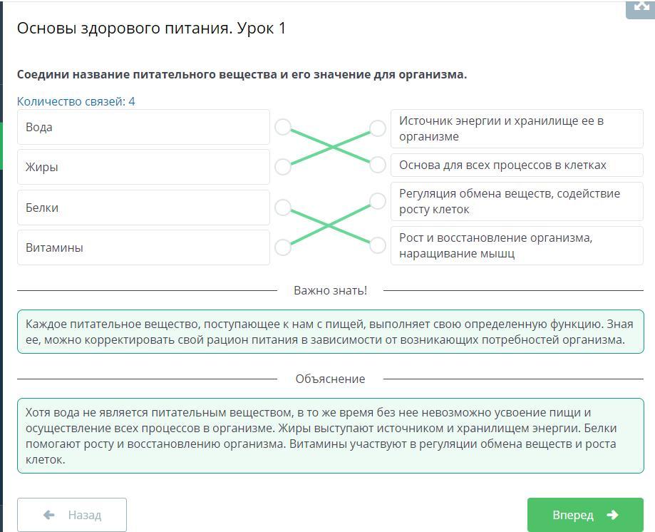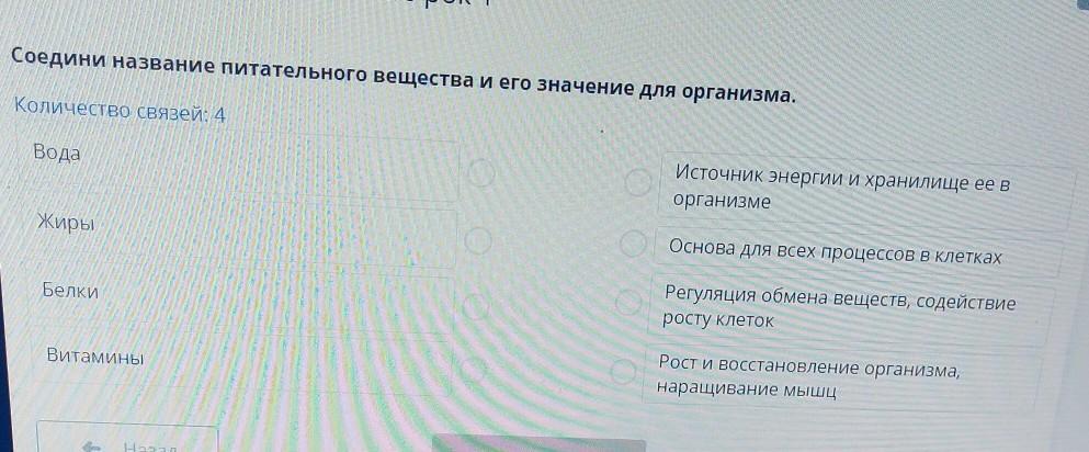 помогите плиз Соедини название питательного вещества и его значение для организма.