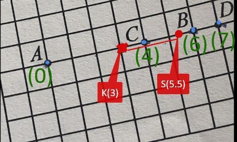 Координата середины отрезка АВ (точка К) отсчитывая от точки А