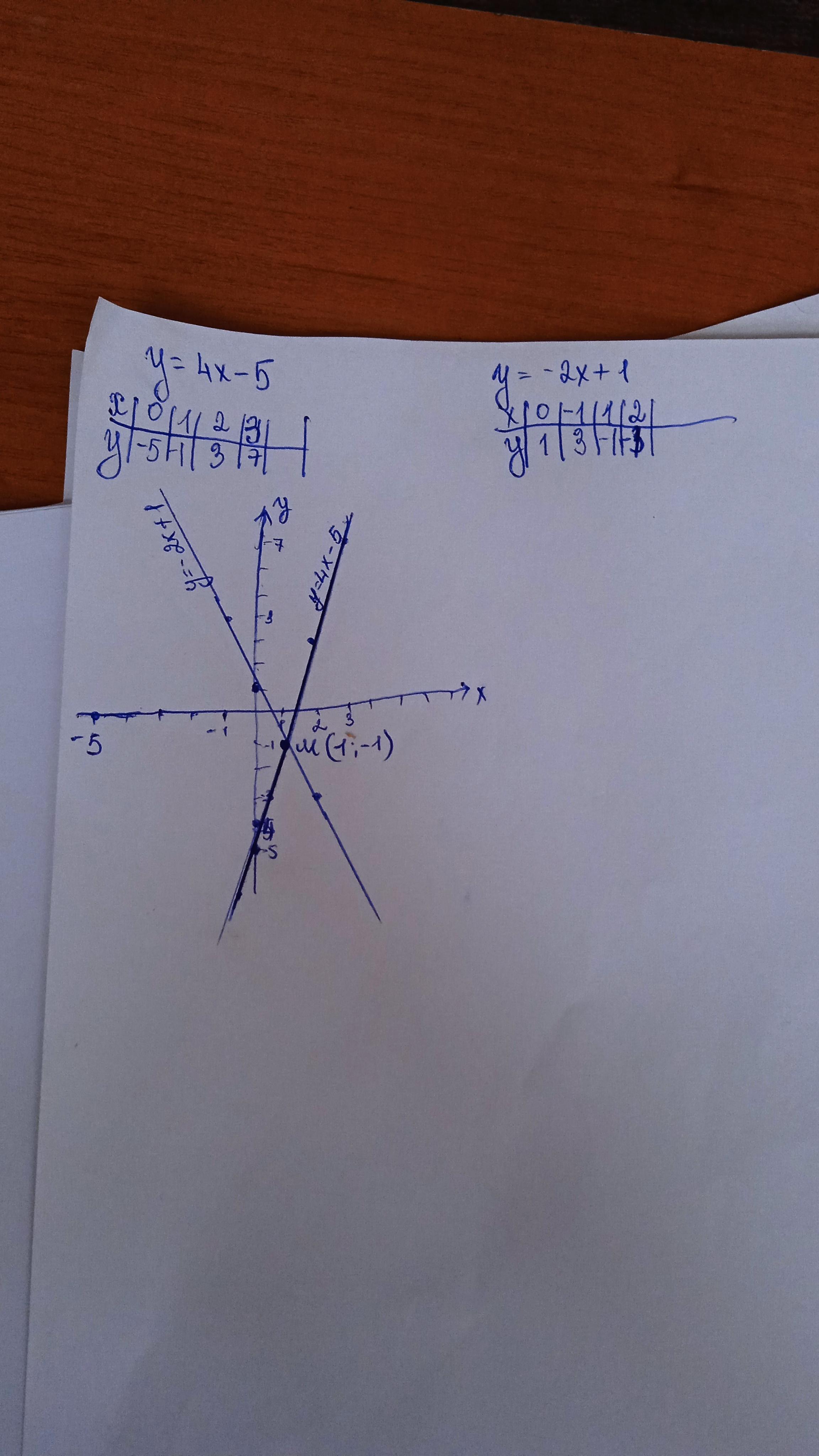 Визначте координати точки перетину графіків фукнкції y = 4x – 5 і y = -2x + 1 (виконавши побудову графіків) *
