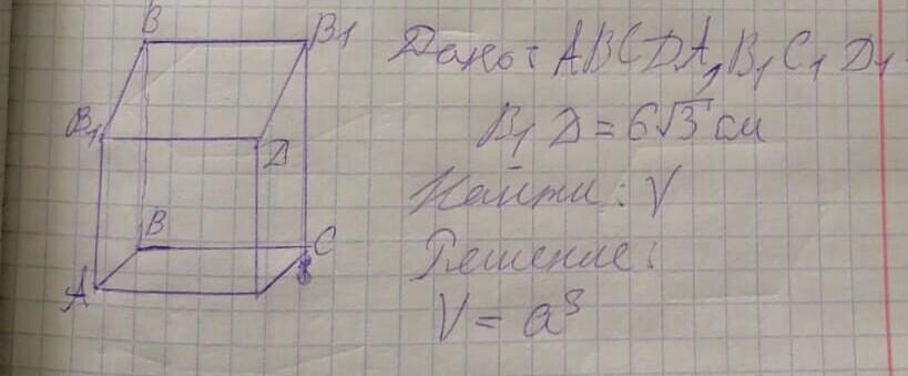 до завтра надо сделать помоги плиииз срочносрочносрочно надо помогите решить пожалуйста : дано куб АВСДА1В1С1Д1-куб В1=6√3 см найти v помогите решить срочно нужно