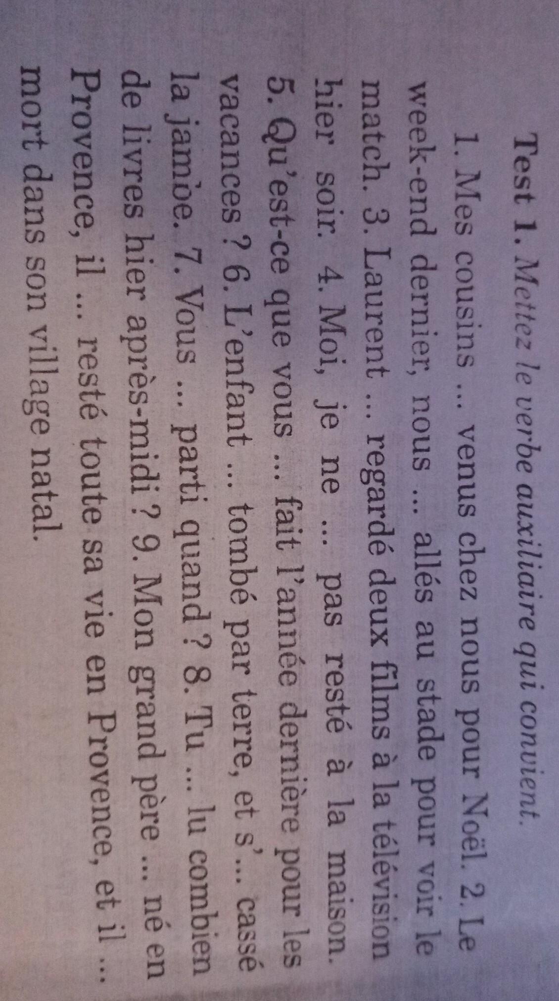1. Sont 2. Sommes 3. A 4. Suis 5. Avez 6. Est 7. Êtes 8. As 9. Est , est, est