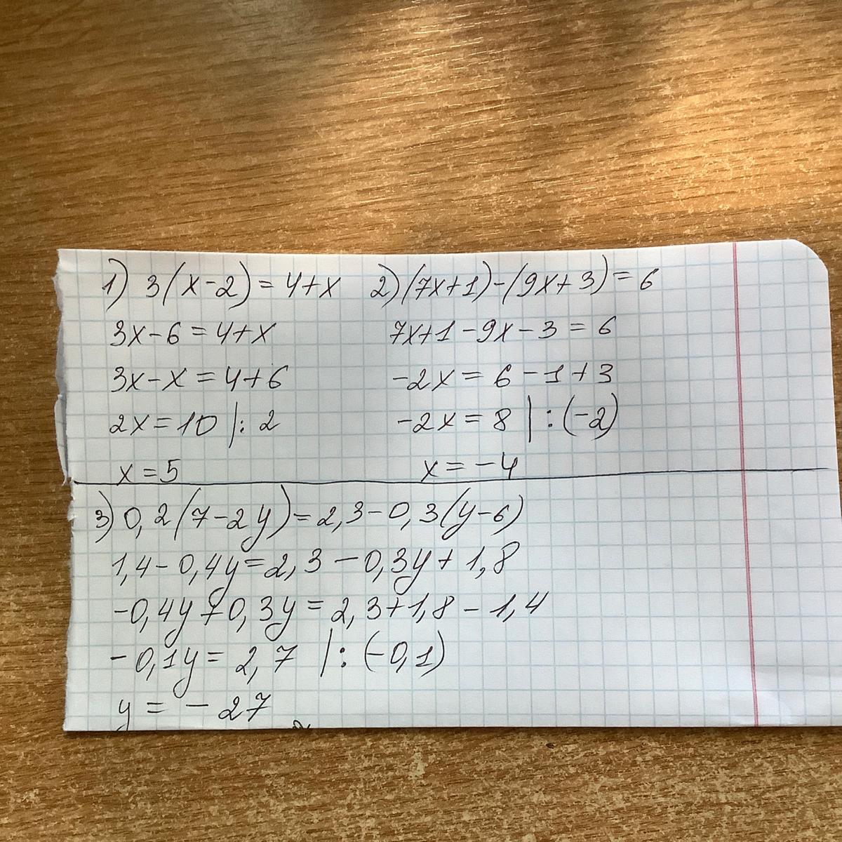 3. 0,2(7-2y)=2,3-0,3(y-6)