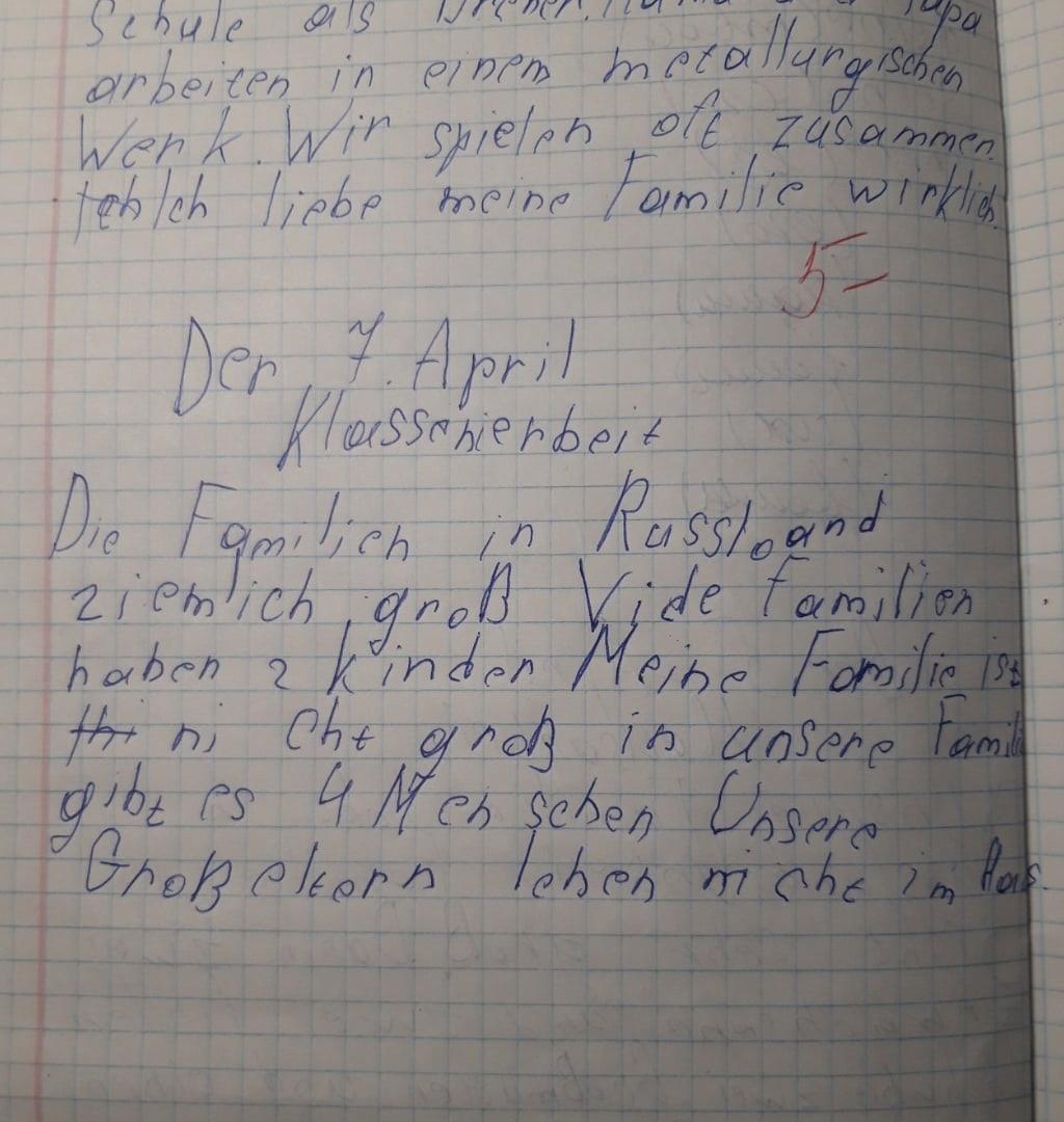 семья в России большая. У семьи 2 ребёнка. 3 предложение непоняла что написано. В нашей семье 4 человека. Наши бабушки и дедушки живут..... а дальше не понятно что написано