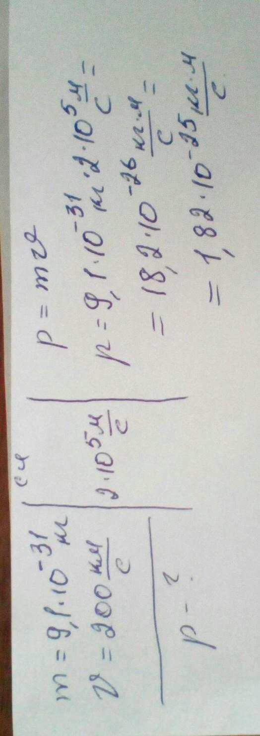 Каков импульс электрона, имеющего массу 9,1 × 10 ^ 31 кг, который движется со скоростью 200 км / с?