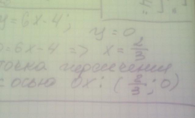 знайдіть точку перетину графіка функції y 6x-4 з віссю абсцис
