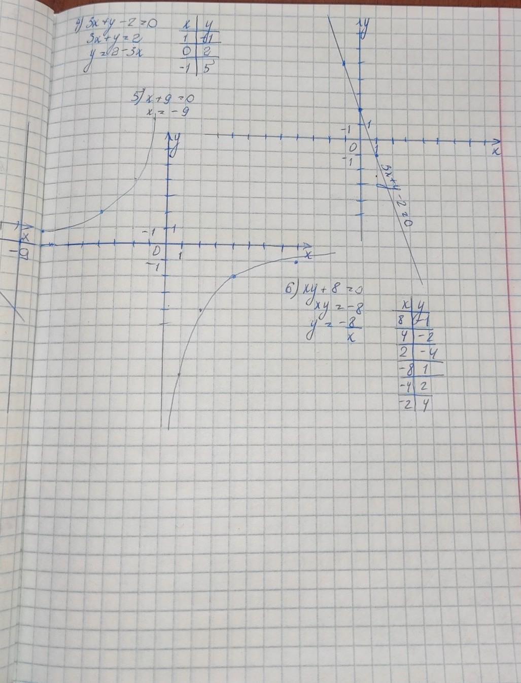 пятый график x = -9 это прямая параллельная оси Oy и проходящая через точку (-9;0)