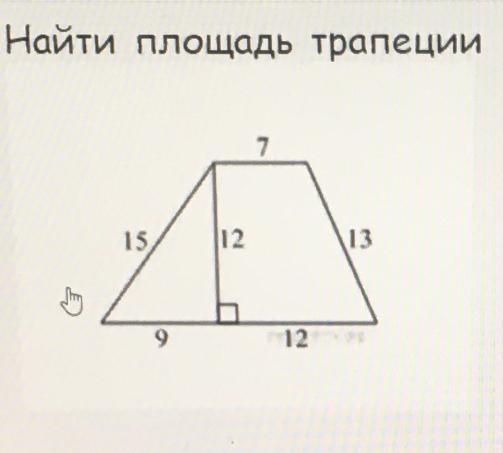 Площадь находится как сумма сторон (параллельных) деления на 2 и умножить на высоту