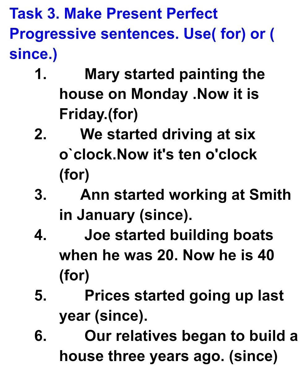 - Mary has been painting the house for 5 days.