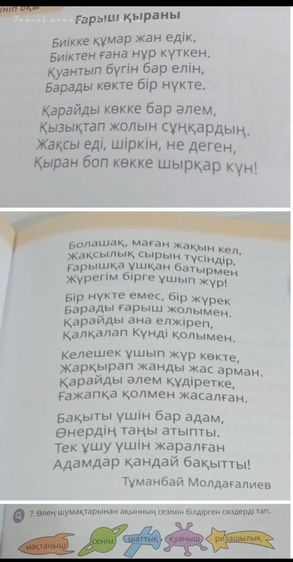 Бұл өлең шумағында қуаныш жайлы және де ризашылық жайлы айтылған