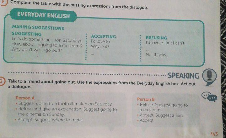 A: I'd love to but I can't. Why don't we go to the cinema on Sunday?