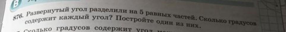 развернутый угол - 180 градусов. 180:5=36 вроде (пересчитай) каждый угол =36 градусам