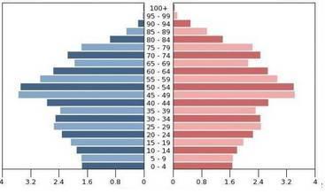 (Ось приблизний вигляд цих статево-вікових структур. Перший це І тип відтворення зі зменшенням населення, а другий приблизний майже баланс і пряма, бо такий малюнок знайти дуже складно).