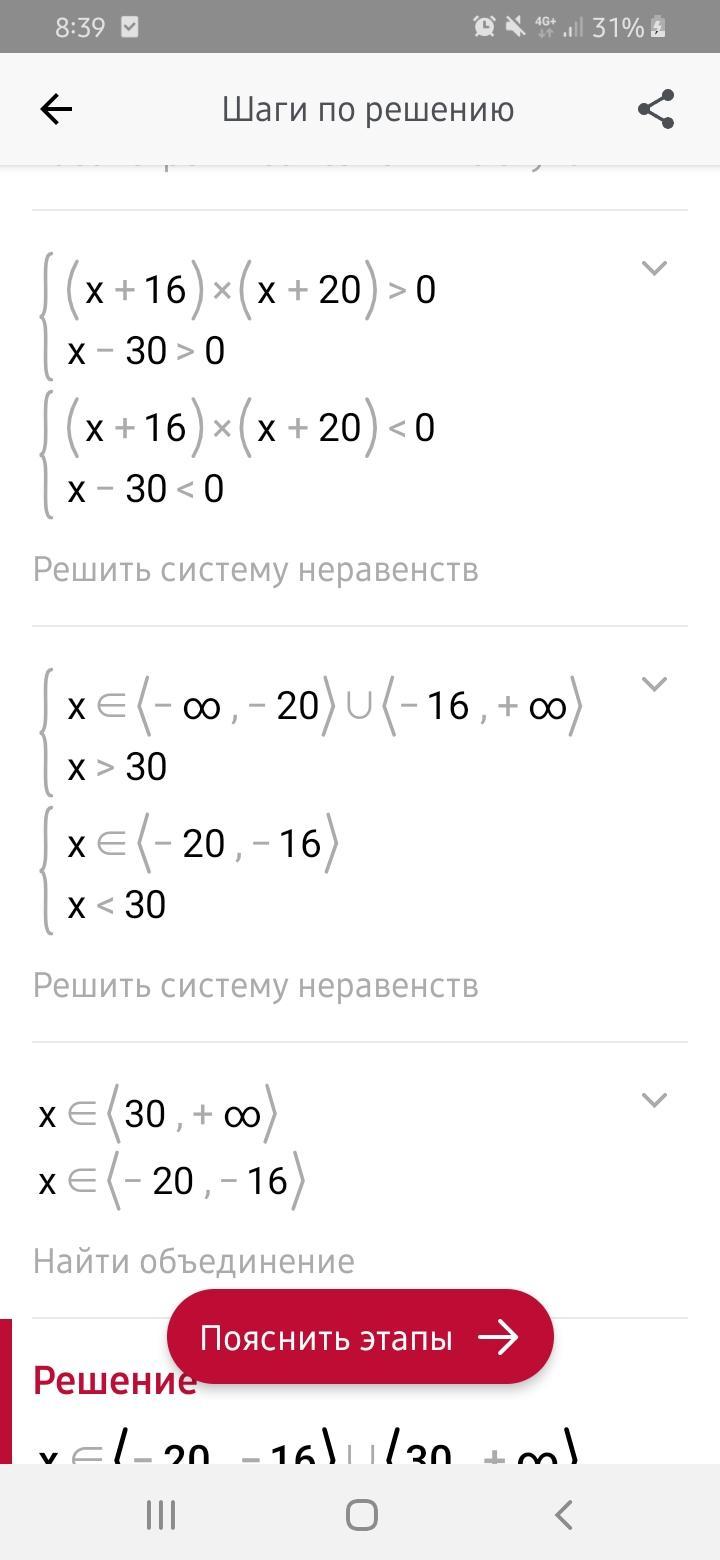 Ответ:х€(-20,-16)U(30;+бесконечность)