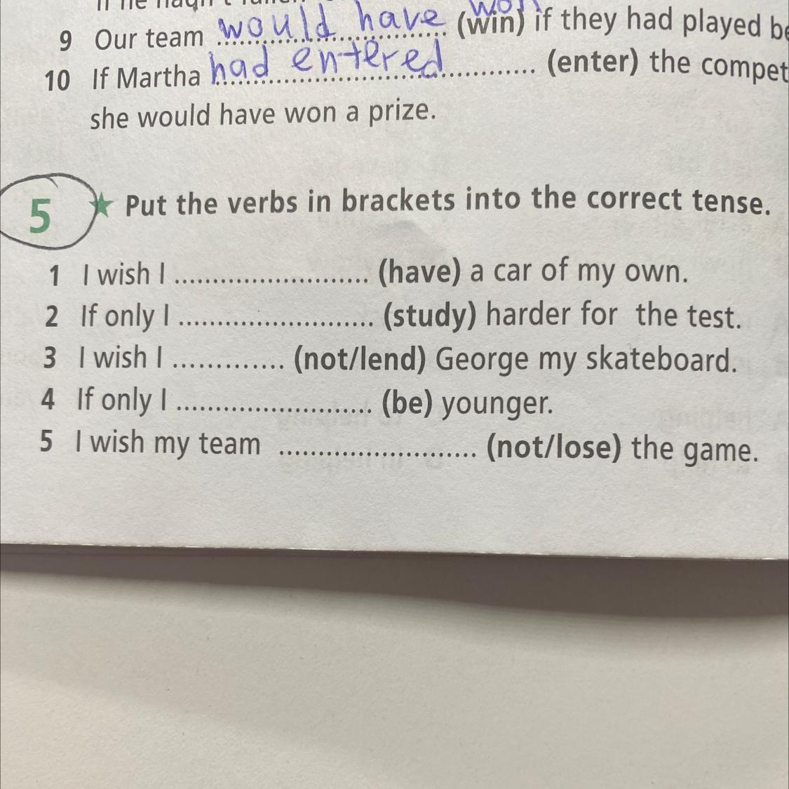 2) If only I had studied harder for the test