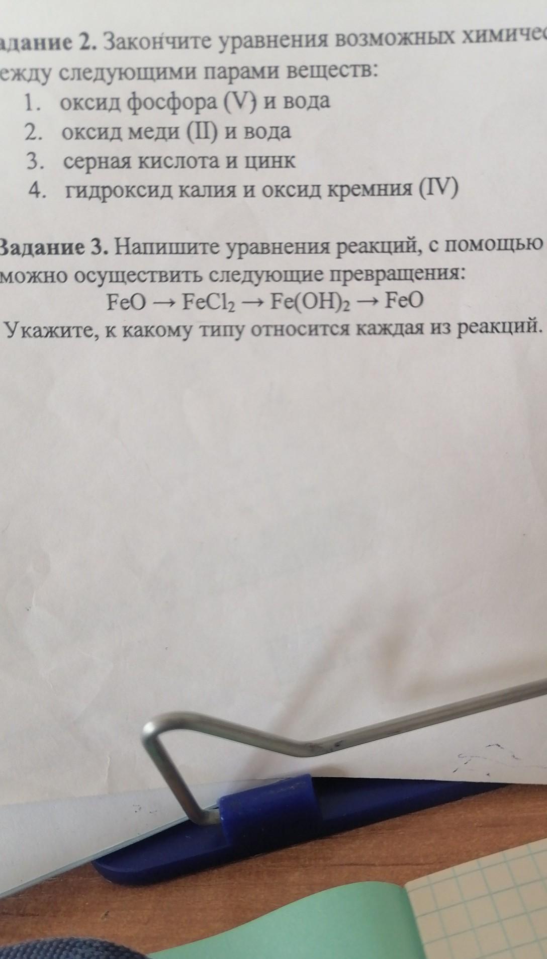 3) FeO + 2HCl = FeCl2 + H2O (обмен)