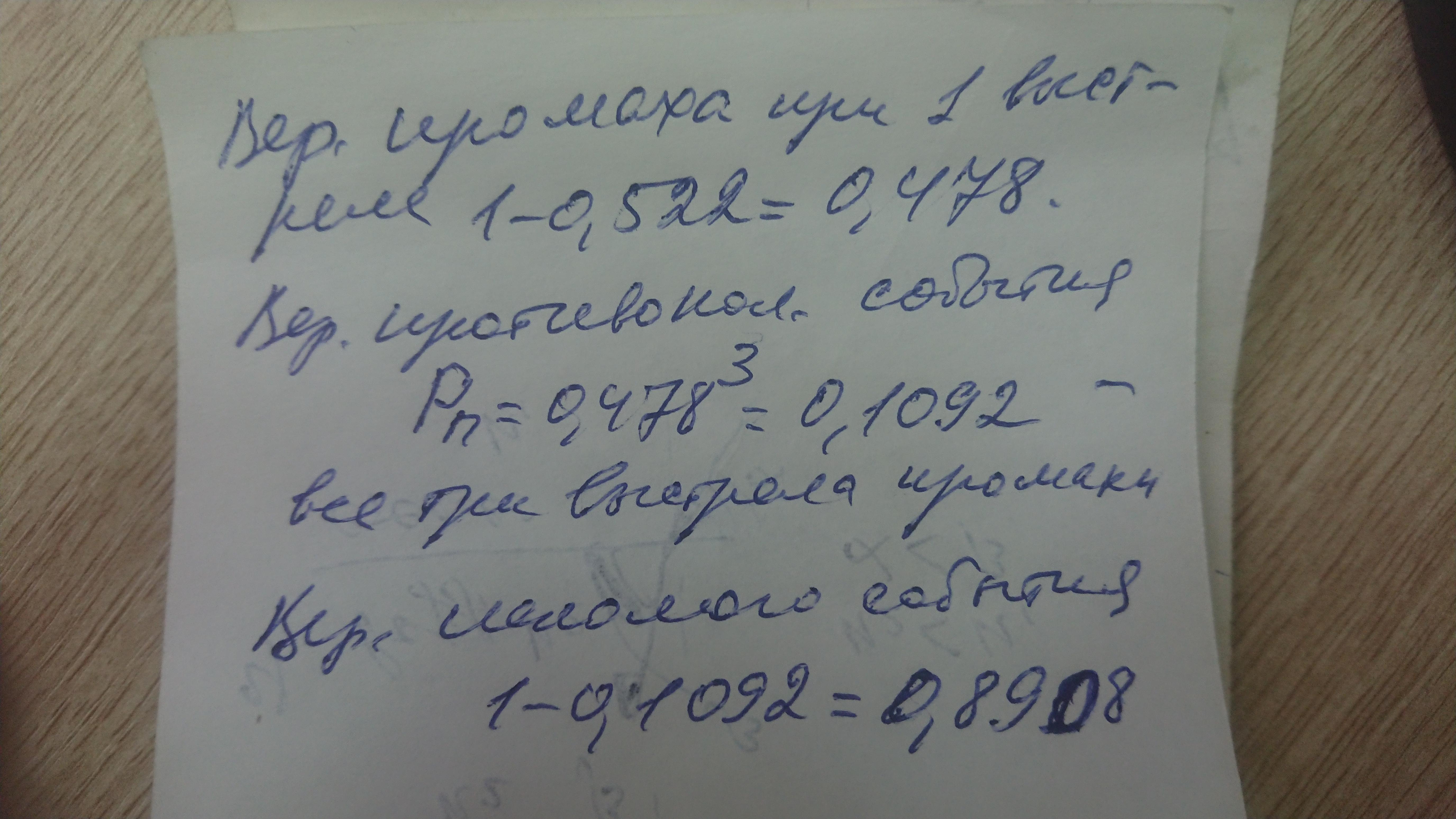 Вероятность промаха при каждом выстреле (округли до тысячных, если требуется):