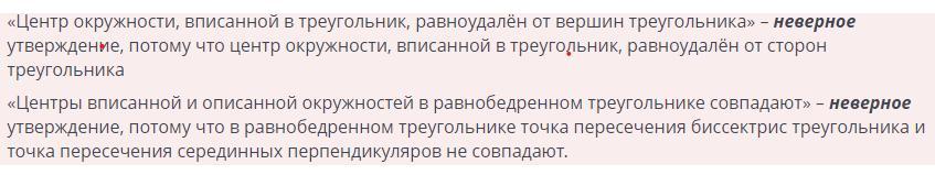 центр окружности, вписанной в треугольник, равноудалён от вершин треугольника