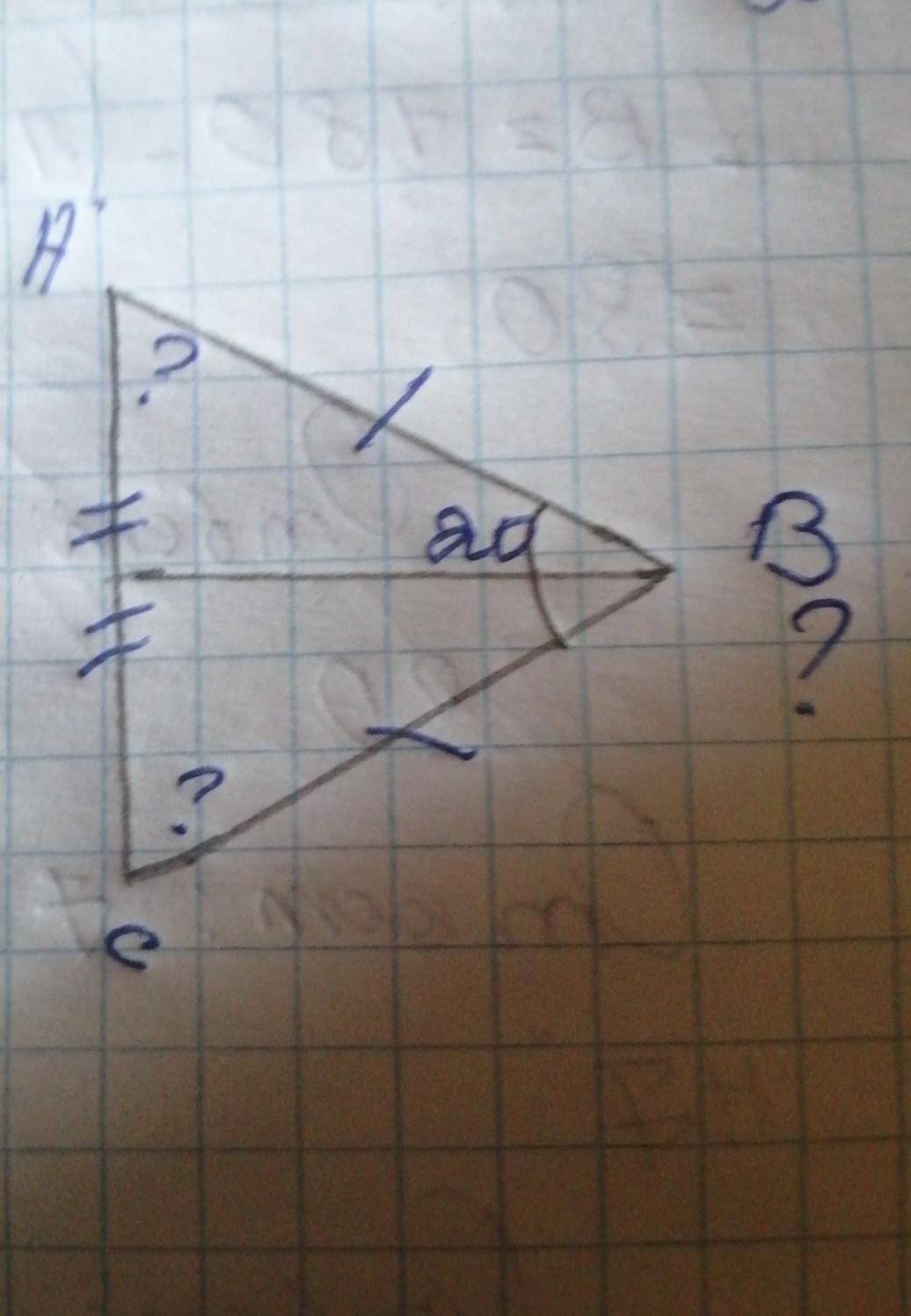В равнобедренном треугольнике медиана равна биссектрисе и высоте, значит Угол В=20*2=40 градусов
