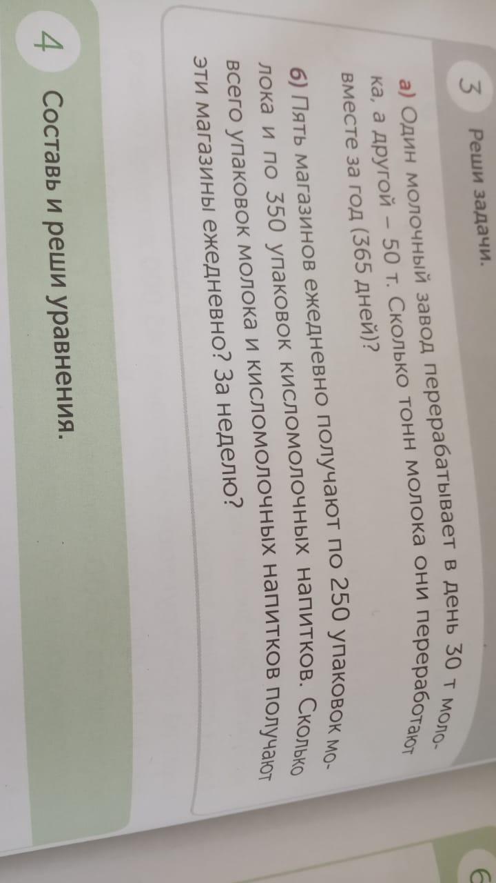 1) (250+350)×5=3000 (упаковок молока и кисл. напитков) — получают все магазины ежедневно;
