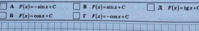 Найдите общий вид первоначальной для функции f(x)°-sinx По Фото. ПОЖАЛУЙСТА ПОМОГИТЕ СРОЧНО ОЧЕНЬ НУЖНО!