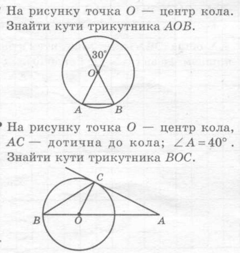 1. а)° На рисунку точка 0 — центр кола.