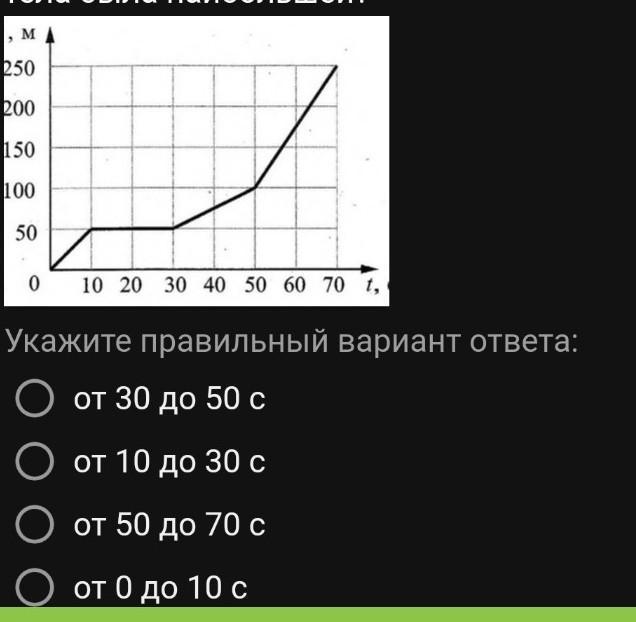 На рисунке представлен график зависимости перемещения тела от времени. На каком промежутке времени скорость тела была наибольшей?