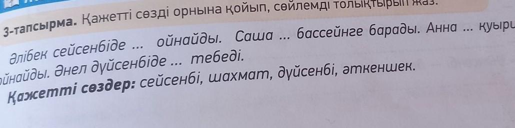 3-тапсырма. Қажетті сөзді орнына қойып, сөйлемді толықтырып жаз.