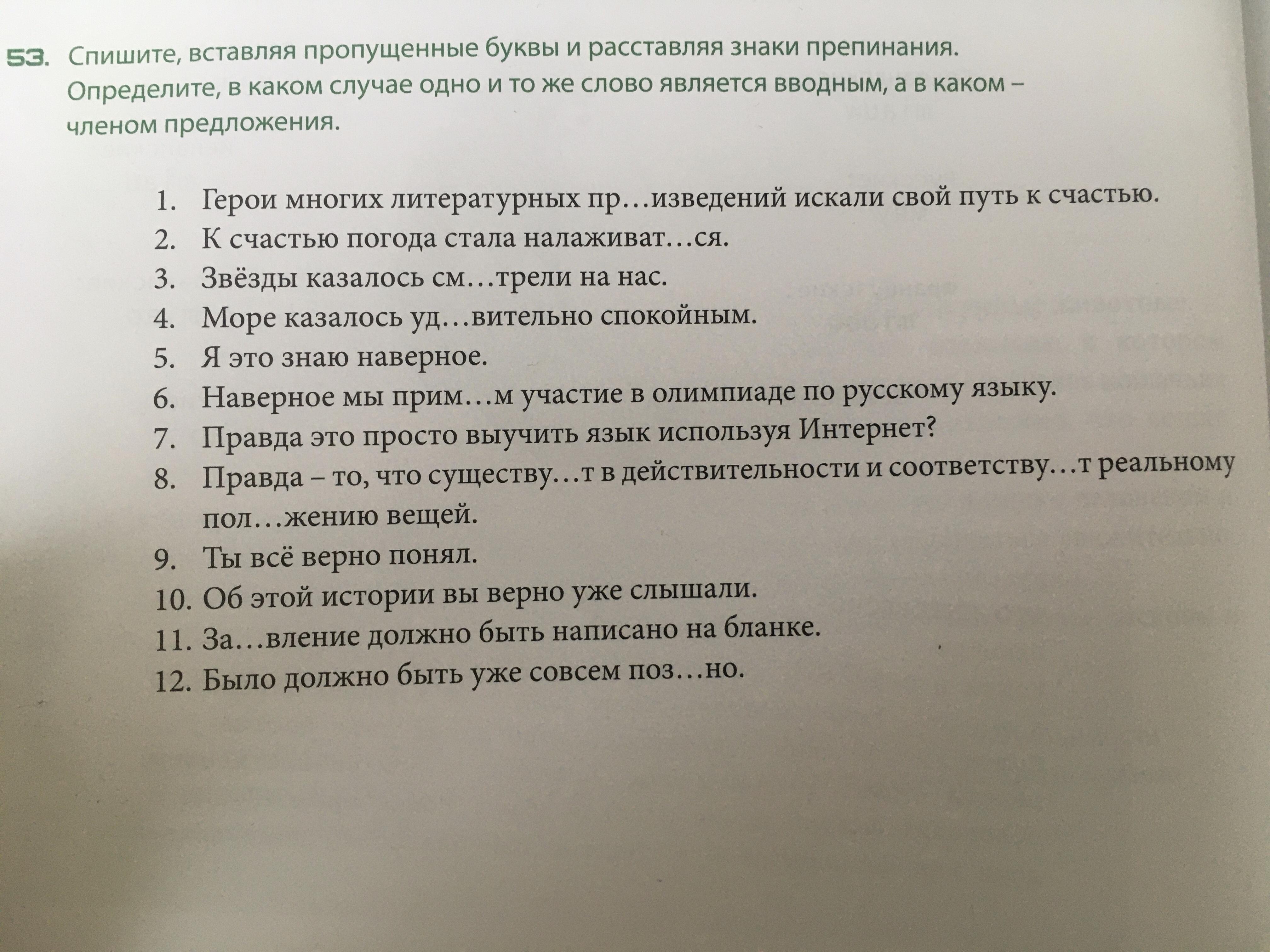 спишите вставляя пропущенные буквы и расставляя знаки препинания. Определите, в каком случае одно и то же слово является вводным, а в каком членом предложения.